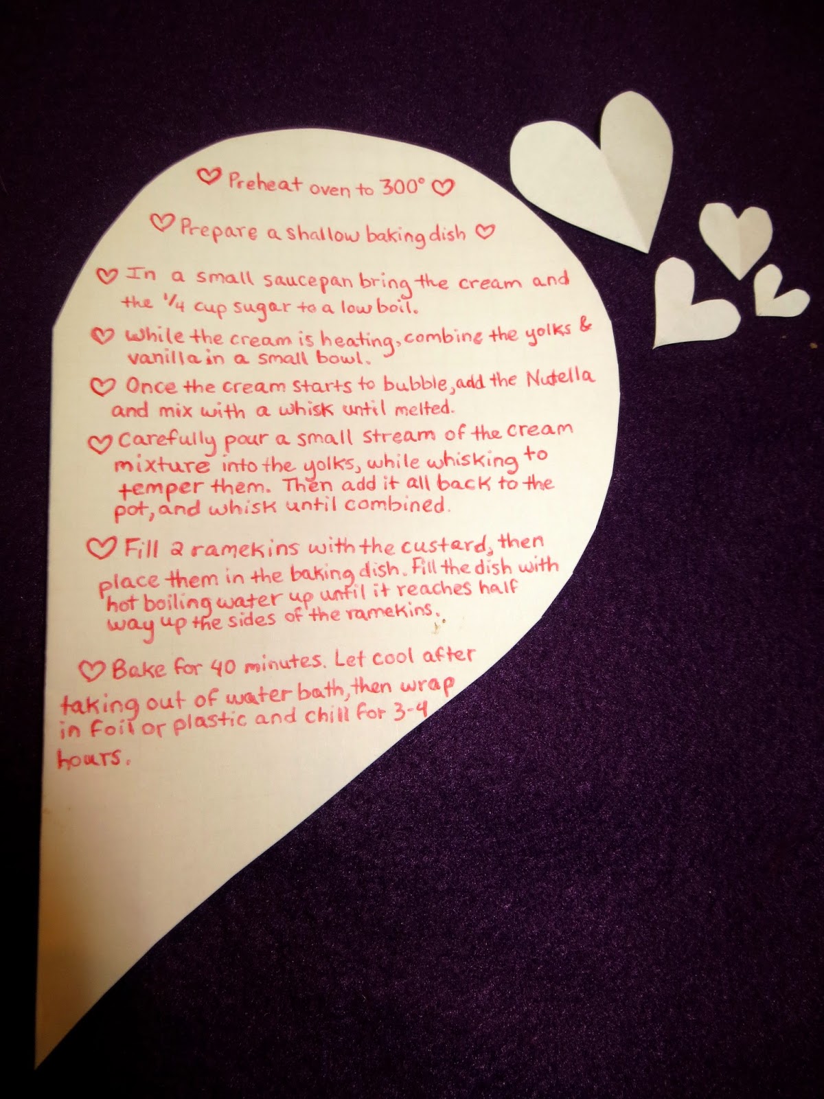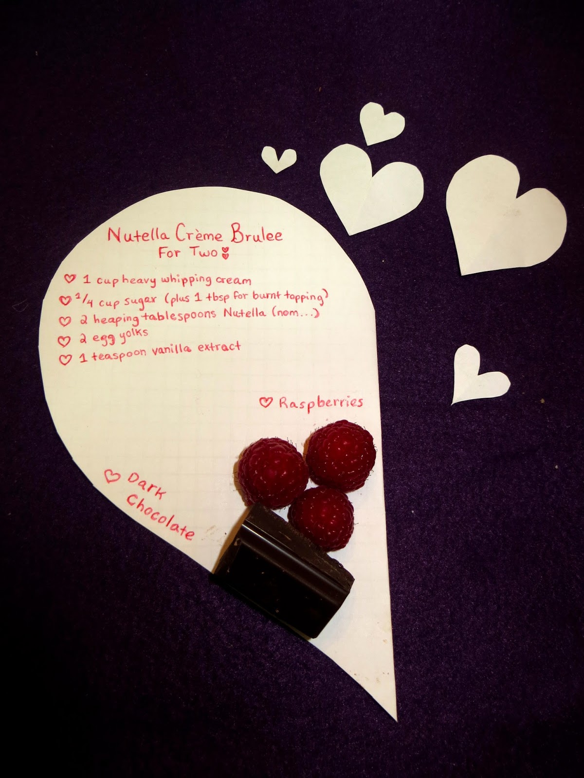 what a cute idea to write the recipe on a heart-shaped card. And creme brulee, mmm Love it!